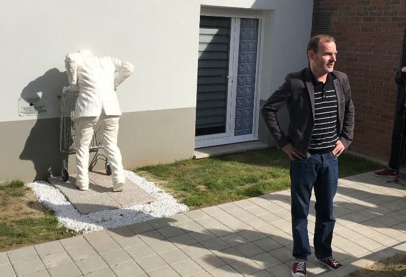 L’artiste François Tilly a dévoilé son oeuvre offerte par NEOXIMO aux habitants de cette nouvelle résidence de 27 appartements et 7 maisons individuelles : « L’autruche au caddie rebondit sur le passé du site : un ancien supermarché. Derrière l’anecdote du passe-muraille, l’image de cet homme empoignant énergiquement son caddie pour entrer dans un mur questionne avec humour notre rapport à la consommation et aux archétypes de la grande distribution. À l’heure d’une remise en cause des circuits de distribution et d’un péril écologique si nous continuons sur les mêmes modes d’exploitation des ressources naturelles, on peut se demander légitimement si ce personnage au caddie ne va pas droit dans le mur… »