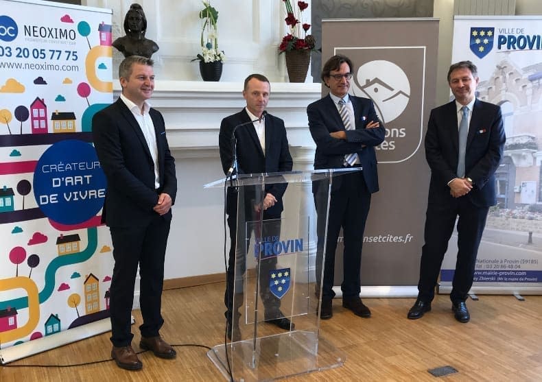 En présence de M. le Maire Joffrey Zbierski, de M. Sébastien Huyghe, député de la 5ème circonscription du Nord, M. Dominique Soyer, Directeur Général de Maisons & Cités et de M. Franck Dubout, gérant de NEOXIMO.